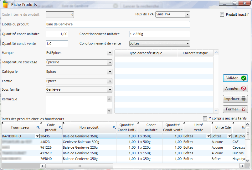 - Nom, code et conditionnement du produit chez le fournisseur.